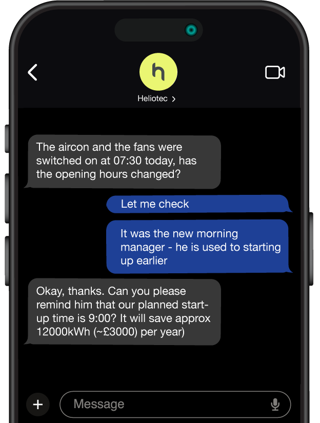 Your energy data is already telling a story. The Helios platform reads it continuously, identifies where waste is occurring and why, and delivers plain-language recommendations your team can act on immediately. No energy expertise required.